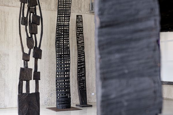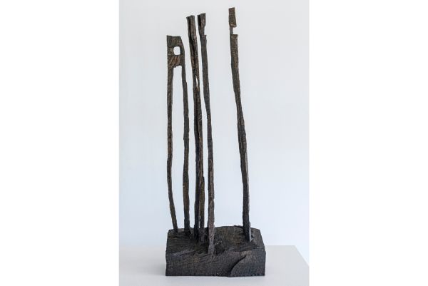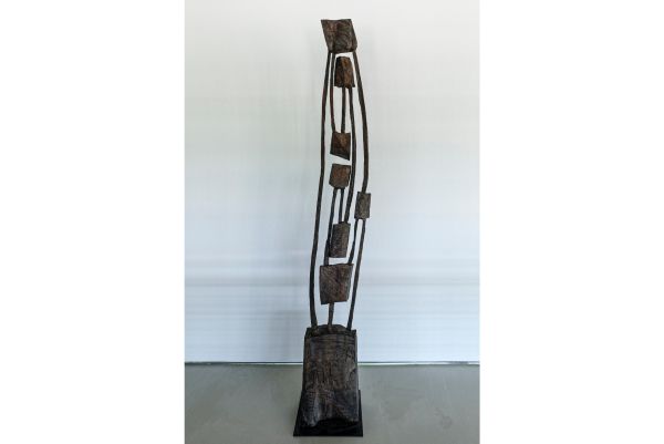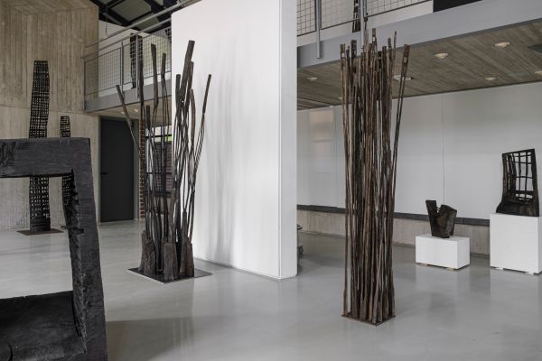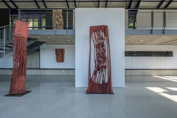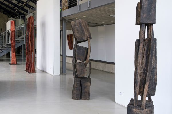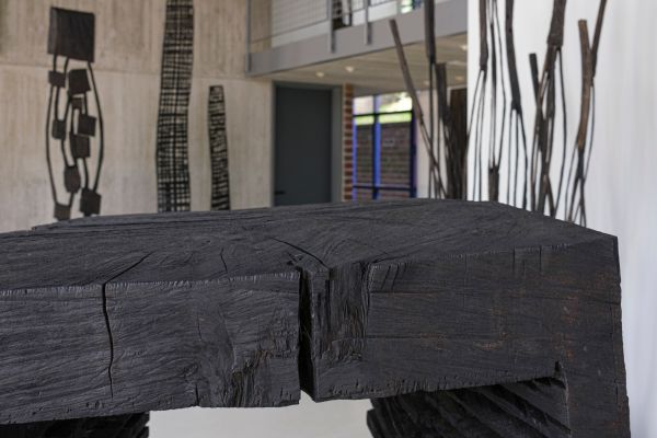 Das Resultat ist vielschichtig. Diese Ausstellung zeigt vor allem die größeren Wandarbeiten und Skulpturen Armin Göhringers mit unterschiedlichen thematischen Schwerpunkten: vertikale und horizontale Strukturen, mit ihren daraus resultierenden Veränderungen durch die Schnittstellen, Kopf/Sockel-Arbeiten, mit der Frage nach der Auslotung von Masse und Gewicht, Arbeiten aus Mammutholz, bei denen die Farbe im Vordergrund steht und Holz/Eisen-Kompositionen.