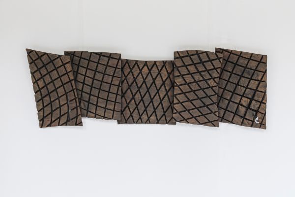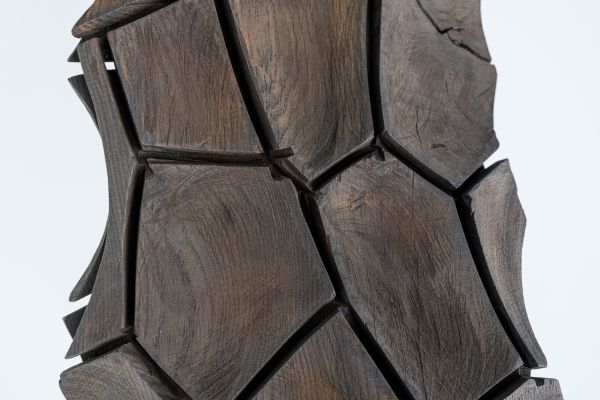 Zur Oberflächengestaltung zählt auch das Schleifen und Lasieren; Letzteres zum Teil mit gelösten Metallpigmenten, die mit der Gerbsäure des Holzes reagieren und mit der Zeit oxidieren und ihre Färbung ändern. Ein weiterer Aspekt im Spiel von Form, Masse, Volumen - Raum, Licht und Schatten.