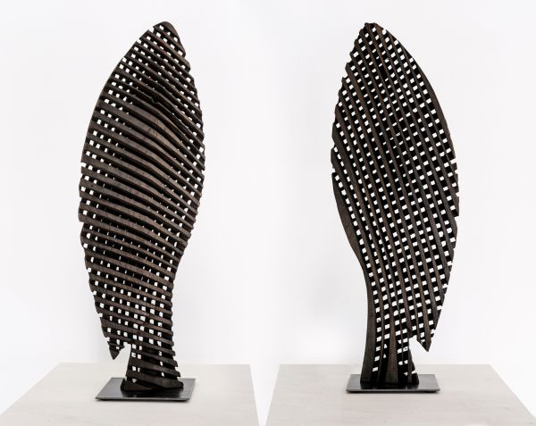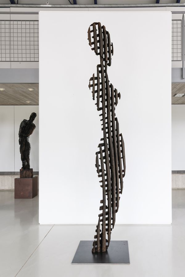 Dabei beschäftigen Frank Leske zwei übergeordnete Themenkomplexe: der menschliche Körper in seiner Bewegung und Haltung und abstrakte Raumskulpturen, die durch das Holz und dessen Wuchs motiviert sind.
