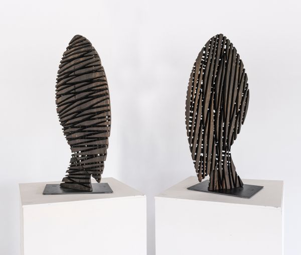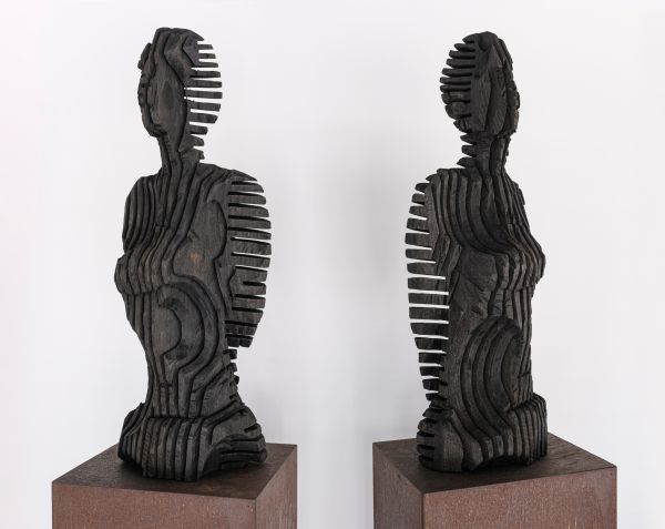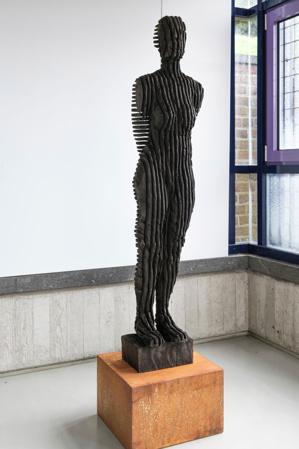 Alle Skulpturen sind aus Eichenholz gefertigt und sowohl für den Innen- als auch für den Außenbereich.