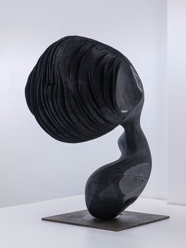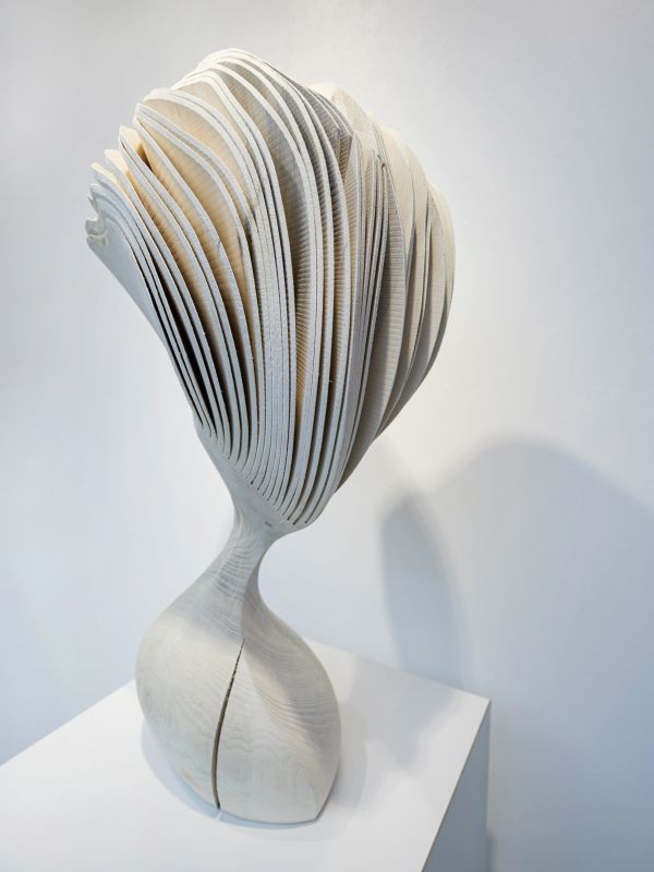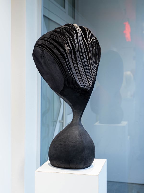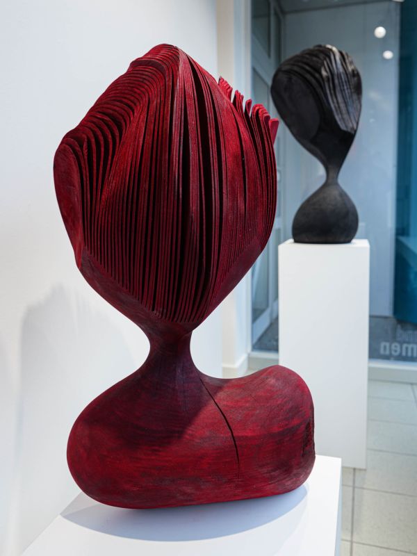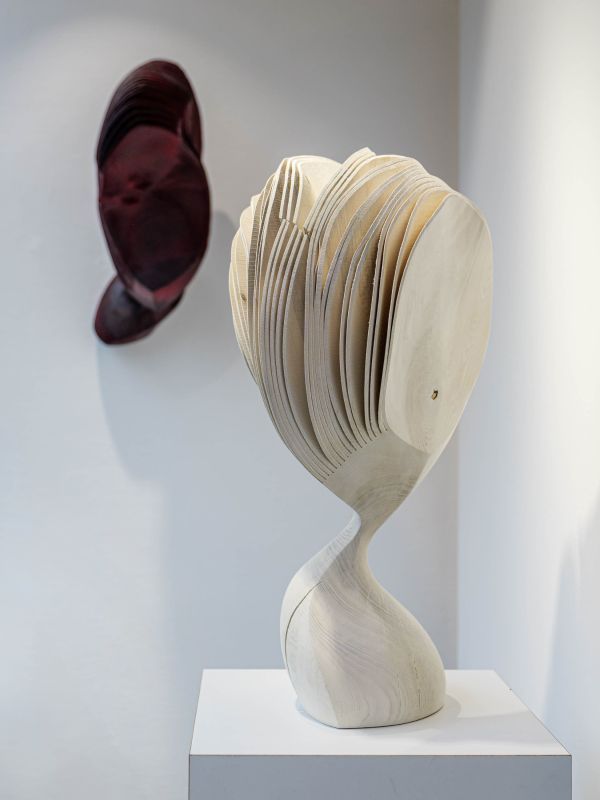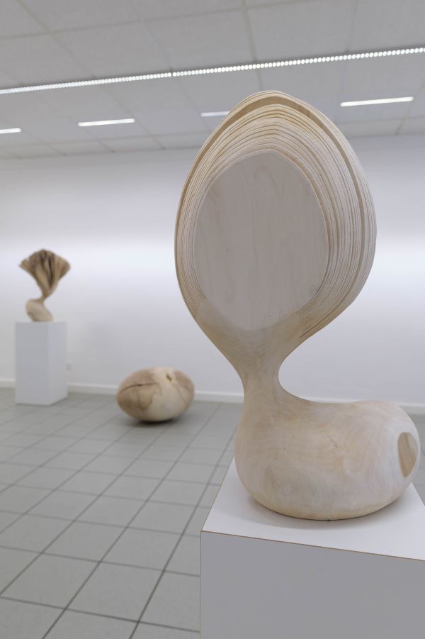 Trotz ihrer kurvenreichen, balancierenden, sich öffnenden Form, strahlen die “moving portraits” auch eine Ruhe und Kraft aus, die vielleicht mit dem zu tun hat, was das Material einst war: ein lebendiger Baum, stark, stabil und immer in veränderlichem Wachstumsprozess. Es beeindruckt, dass Lars Zech etwas grundsätzlich Neues aus dem Material Holz schafft und damit etwas Urvertrautes für uns erfahrbar macht. Indem wir die Werke umkreisen, erliegen wir diesen Eindrücken aus Oberfläche und Bewegungsmomenten, die uns ein Spiel von Veränderungsmöglichkeiten suggerieren.