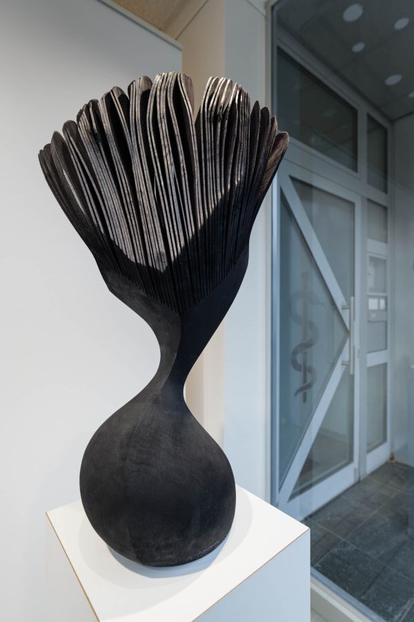 Eindeutiger in Ruhe, Kraft und Stabilität scheinen uns die Arbeiten der Werkgruppe “Fortuna Riesen Schalen”. Vielleicht erst bei näherer Betrachtung nimmt man die ihnen innewohnende Bewegung war, die durch konkave und konvexe Ausbuchtungen, Wölbungen und (Ver-)Drehungen der Wandungen entsteht. Trotz ihrer Präsenz, ja zuweilen Monumentalität, spiegeln diese Objekt-Schalen, ebenso wie die “moving portraits“, eine Natürlichkeit und Leichtigkeit, die ergreift und fasziniert.
