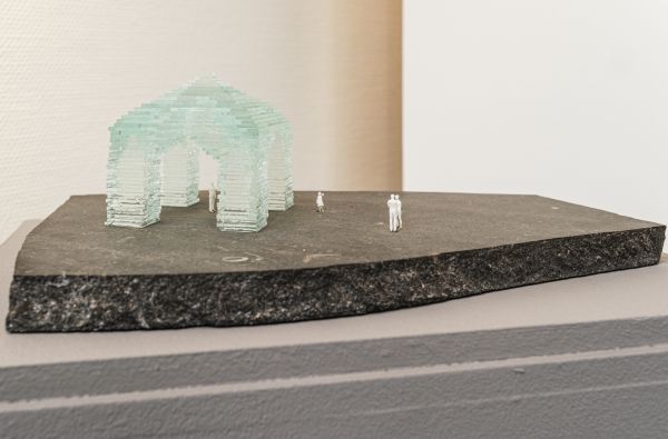 Öffnungen und Raum führen unweigerlich zu Übergängen und dem bevorzugten Motiv des Künstlers, dem Tor. Das Tor trennt die eine (Außen-), von der anderen (Innen-) Welt und ist in Mythen, Sagen und Bräuchen schon immer ein symbolischer Ort des Übergangs. Auch die raumgreifenden Objekte aus farblosem Flachglas können als Tore verstanden werden, die von Licht und Raum durchdrungen werden und mit der dem Material innewohnenden Fragilität auf Vergänglichkeit verweisen.