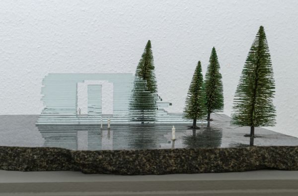 Das Thema „Raum“ spielt in allen Arbeiten von Günther Thorn eine Rolle und so ist es nicht verwunderlich, dass gerade der transparente Werkstoff Glas den Künstler fasziniert. Thorn verwendet dieses Material in seinen Glasobjekten, Modellen und Rauminstallationen ausnahmslos in seiner farblosen, transluzenten Variante und ermöglicht dem Licht einen fast ungehinderten Durchgang. Auch ein Rahmenglas, das zwei durch Risse in der Bildarbeit entstandene Öffnungen verbindet, ist Gestaltungsmittel.