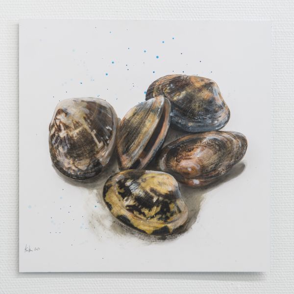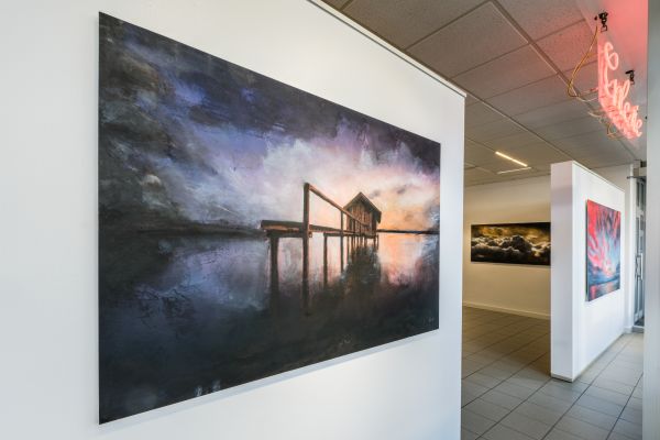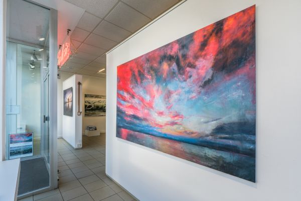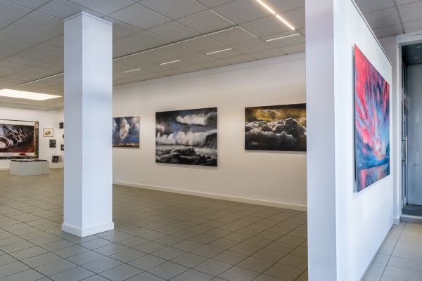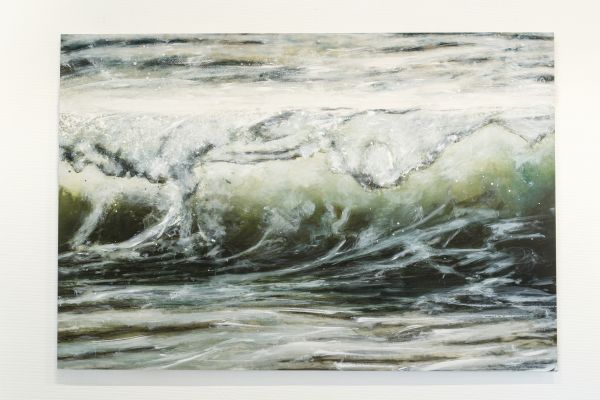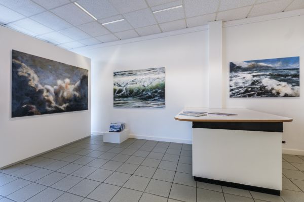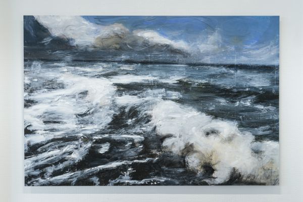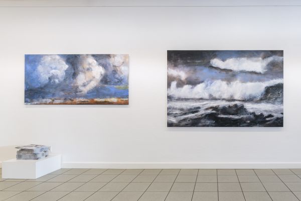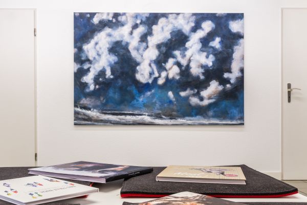 Die beiden Werkgruppen Heaven can wait und Mare verkörpern unterschiedlichste Stimmungen und Emotionen im Spiel der Elemente. Ölbilder auf Papier, aufgezogen auf Alu-Dibond zeigen sowohl realistische Darstellungen von Wolken und Meer als auch, bedingt durch die Pinselführung, sich auflösende Konturen der Motive. Dieses Fluktuieren zwischen Formlosigkeit und Form schafft bildgewaltige ausdrucksstarke Werke bis hin zur Abstraktion. Wolken und Wasser stellen eine Verbindung und zugleich eine Loslösung von allem Irdischen dar. Sie sind gemalte grenzenlose Freiheit von ungeheurer Kraft und Schönheit.